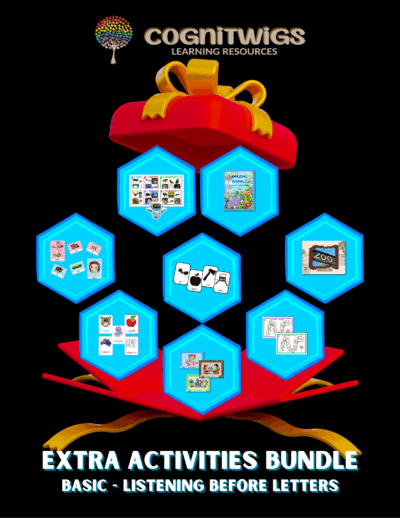 • 27 sets of large picture cards featuring words with the same starting sound